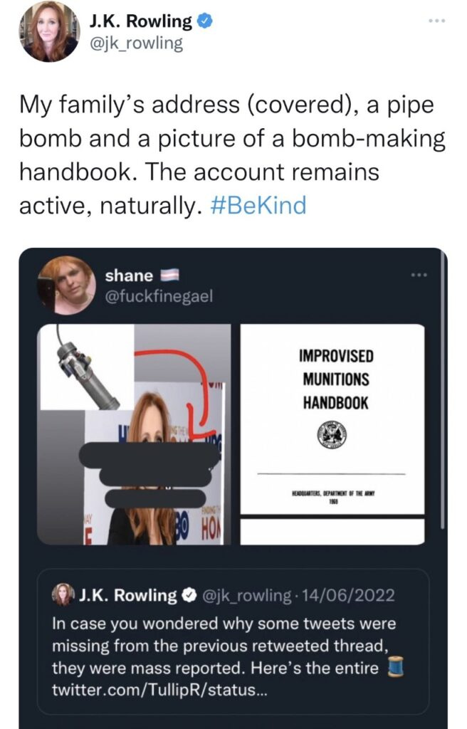James Lindsey, an important figure in the fight against nonsense was permanently banned from Twitter for saying “Ok, child sexualization specialist”. This deserved a permanent ban? This is ‘hateful’? James Lindsey is banned for saying “Ok, child sexualization specialist” but posting a picture of JK Rowling with her personal address and a bomb making guide is acceptable?